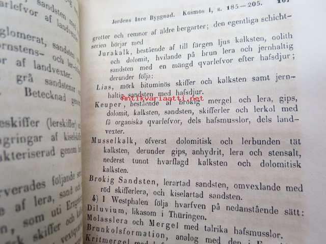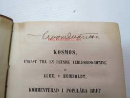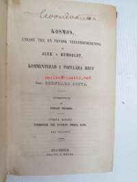 Kosmos, utkast till en physisk verldsbeskrifning af Alex. v. Humboldt, kommenterad i populärä bref af Prof. Bernhard Cotta - översättning - Första bandet. Komnmentar till Kosmos´första band, med träsnitt.