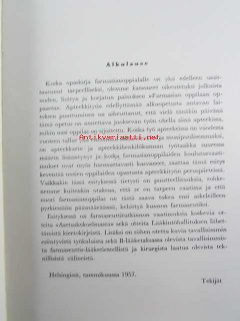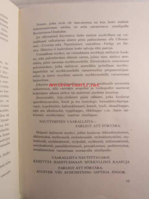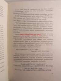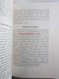 | Saatavilla | 1 kpl | | Julkaisuvuosi | 1957 | | Sivuja | 154 | | Kunto | K2 | | Sidonta/painoasu | Nidottu (pehmeäk.) | | Kielet | Suomi, Ruotsi |
