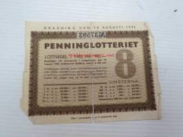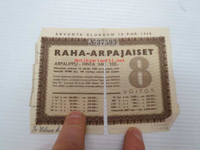 Raha-arpa, Raha-arpajaiset / Penninglotteriet, lottsedel elokuu 1940 nr 37593