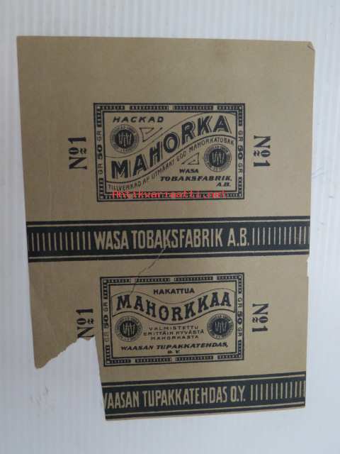Hakattua Mahorkkaa - Vaasan Tupakkatehdas Oy / Hackad Mahorka - Wasa Tobaksfabrik Ab -etiketti
