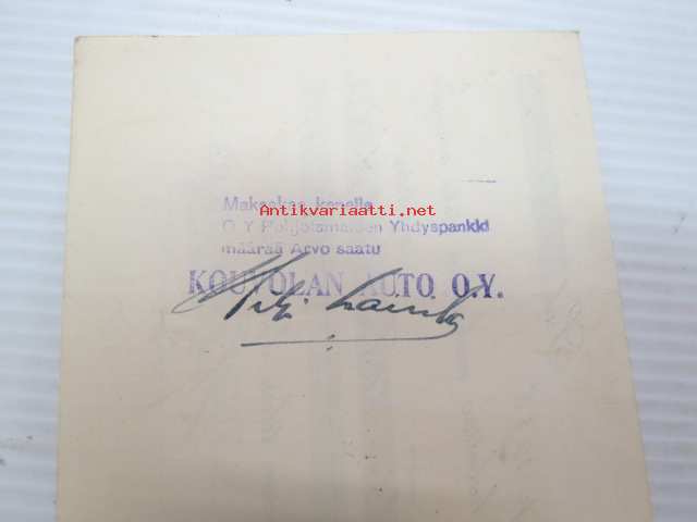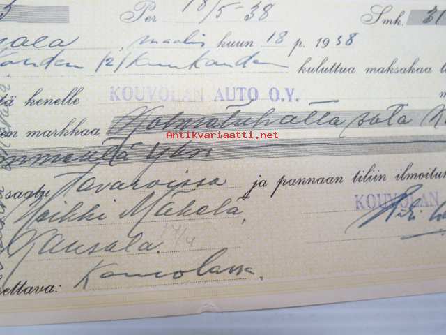 Kouvolan Auto Oy, 18.3.1938 -vekselilomake