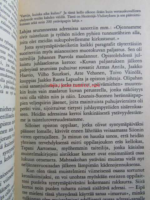 | Saatavilla | 1 kpl | | Julkaisuvuosi | 1979 | | Sivuja | 387 | | Painos | 1 | | Kunto | K3 | | Sidonta/painoasu | Sidottu (kansipaperit) | | ISBN | 951-0-9974-0 | | Kielet | Suomi |