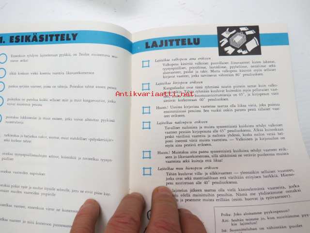 | Saatavilla | 1 kpl | | Julkaisuvuosi | ? | | Sivuja | 20 | | Kunto | K2 | | Sidonta/painoasu | Nidottu (pehmeäk.) | | Kielet | Suomi |