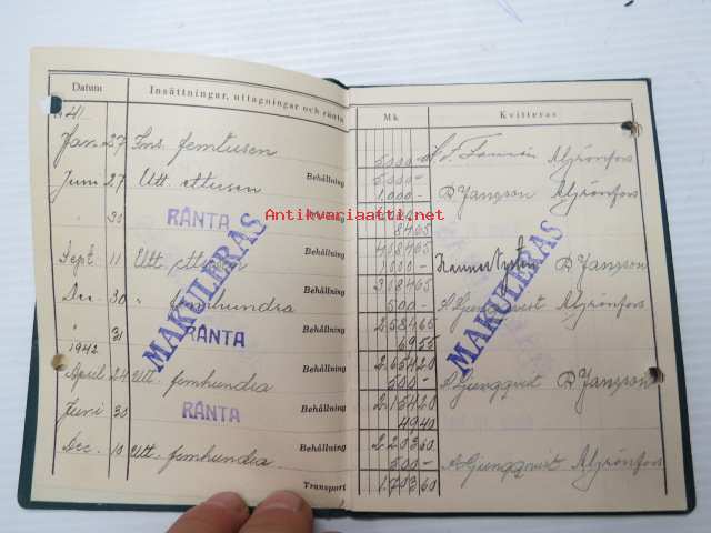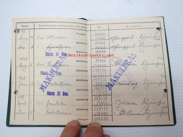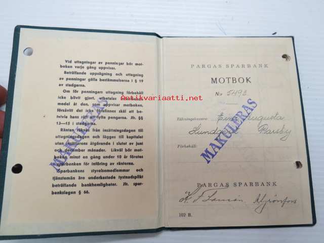 Pargas Sparbank Motbok nr 5493 Eine Augusta Lundqvist