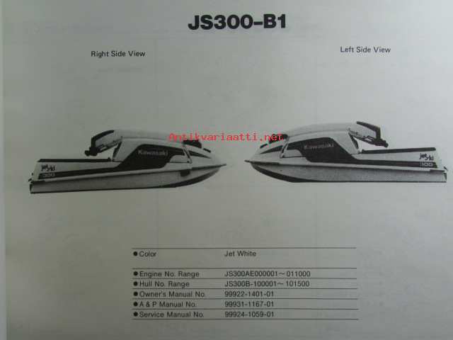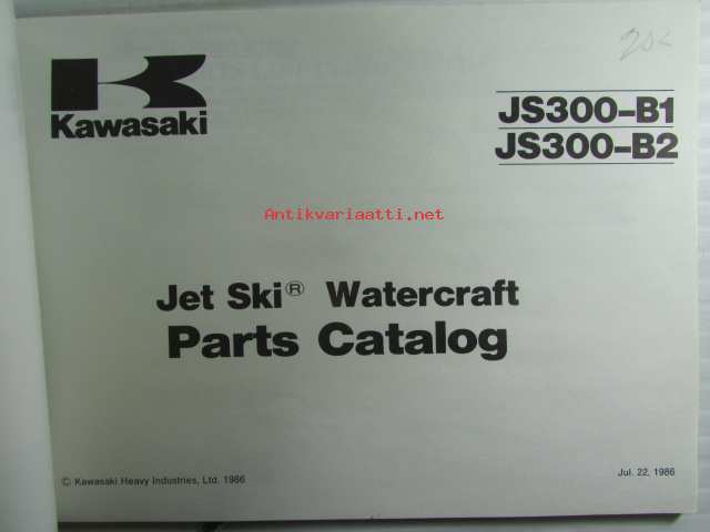 Kawasaki JS 300-B (Jet Ski 300), For Export Market, Watercraft parts catalog - Vesijetti varaosaluettelo