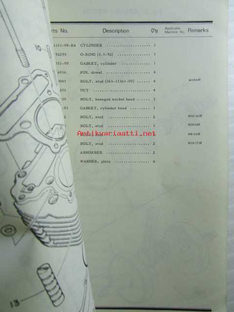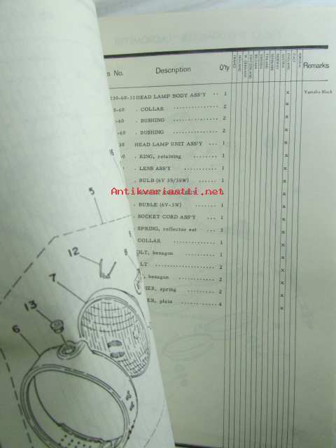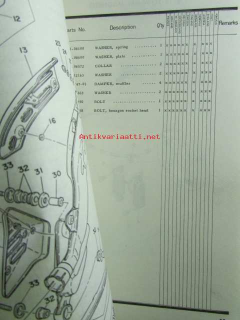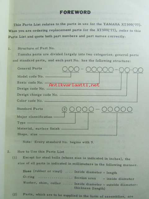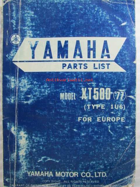 Yamaha parts list model XT500 ('77) (type 1U6) for Europe - Varaosaluettelo