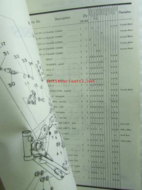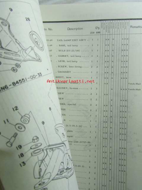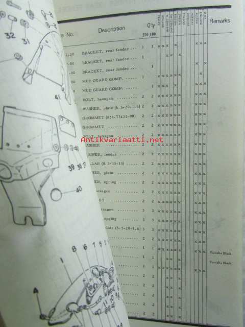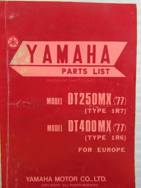 Yamaha parts list model DT250MX ('77)(type1R7) model DT400MX ('77)(type1R6) for Europe