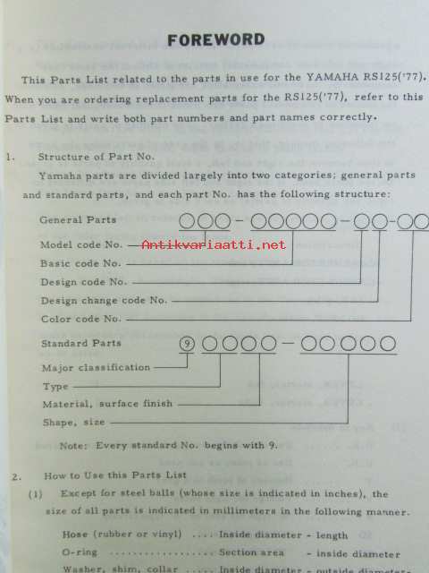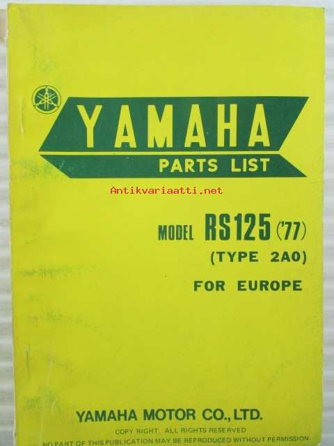 Yamaha parts list model RS125 ('77)(type 2A0) for Europe - Varaosaluettelo