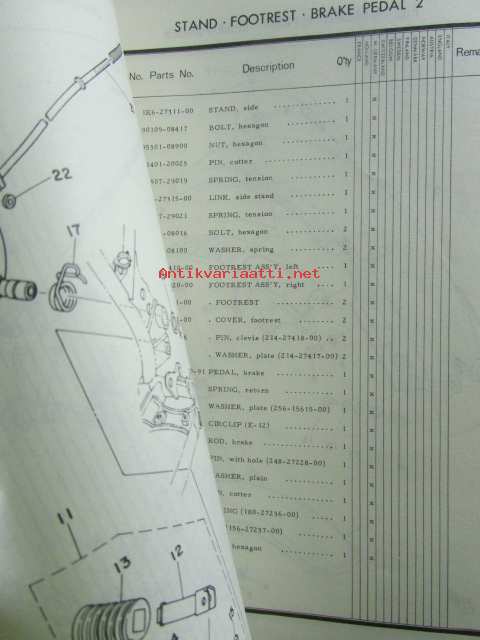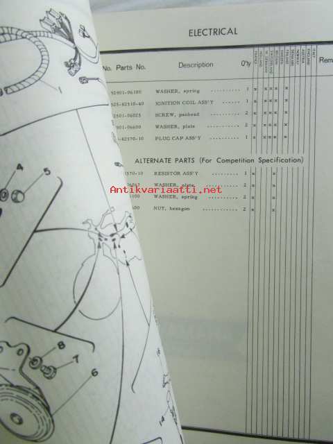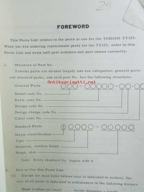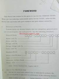 Yamaha parts list model TY125 ('77)(type 1K6) for Europe - Varaosaluettelo