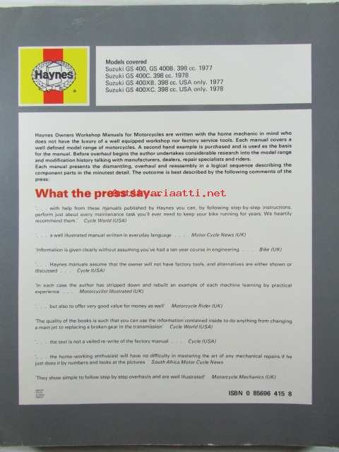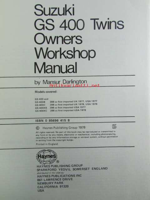 Suzuki GS400 Twins, 398cc 1976 on, Owners Workshop Manual - Moottoripyörän omistajan käsikirja