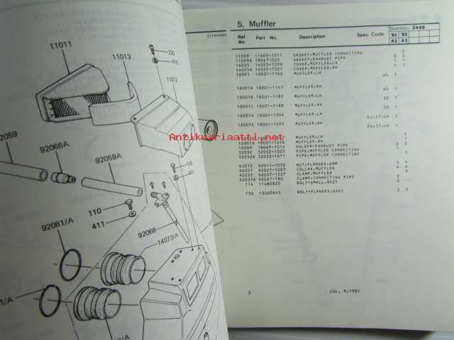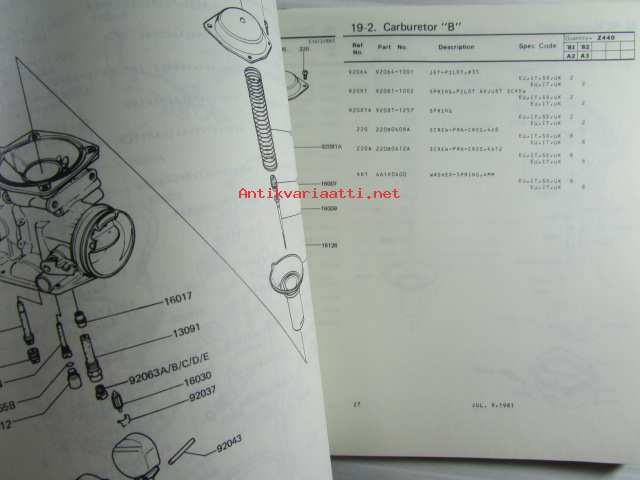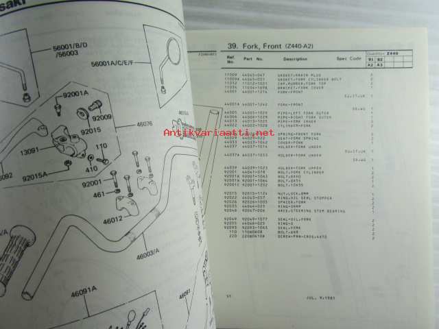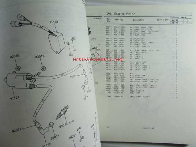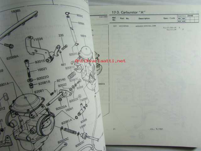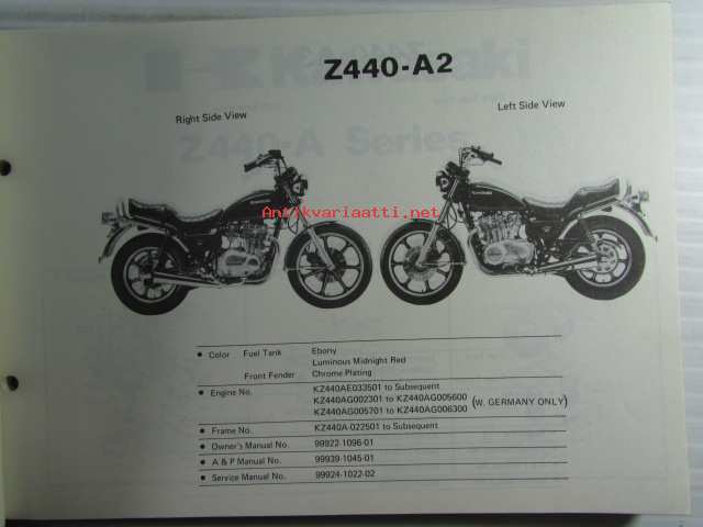 Kawasaki Z440-A2 Z440-A3 for European market, motorcycle Parts Catalog - varaosaluettelo