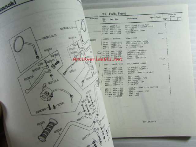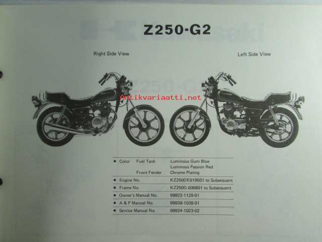 Kawasaki Z250-G, Z250-G2, For European Market, motorcycle Parts Catalog - varaosaluettelo