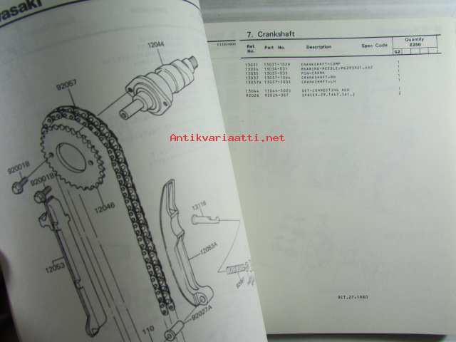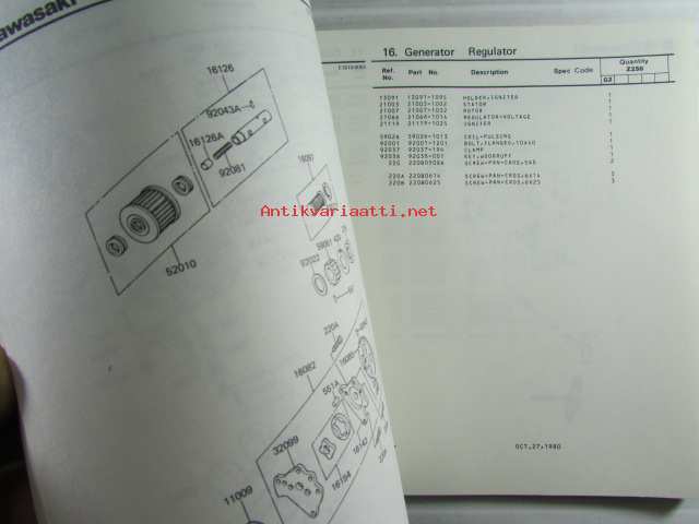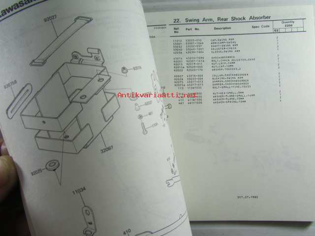 Kawasaki Heavy Industries, 198018 x 26 cm varaosaluettelo.