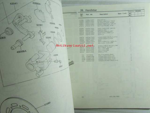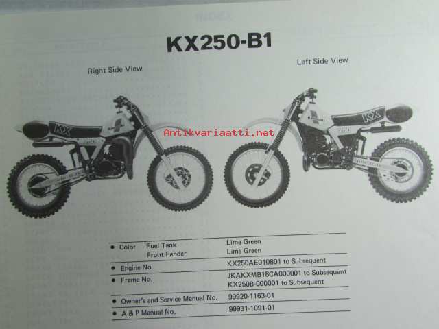 Kawasaki KX250-B, For European Market, motorcycle Parts Catalog - varaosaluettelo