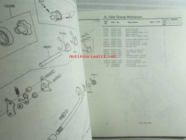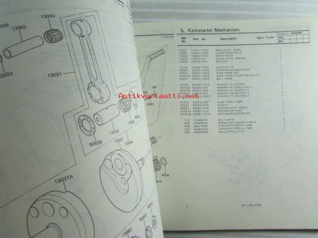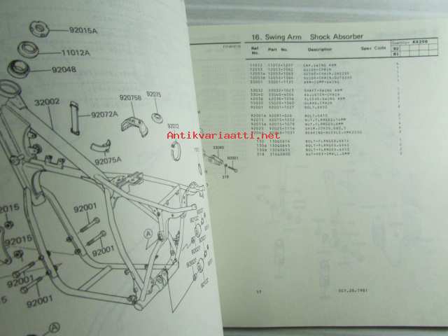 Kawasaki Heavy Industries, 198118 x 26 cm varaosaluettelo.