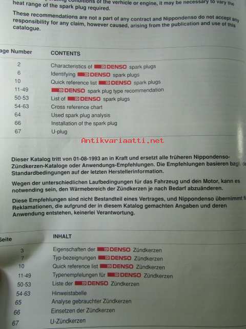 Denso Spark Plugs 1993-94 Recommendation Catalogue - sytytystulppaluettelo