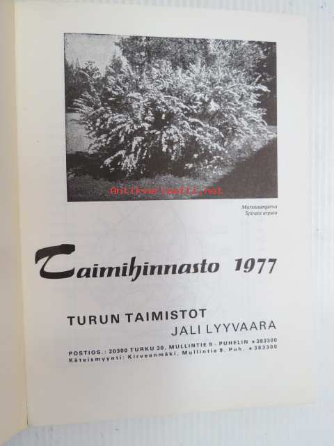 Taimihinnasto 1977 Turun taimistot Jali Lyyvaara
