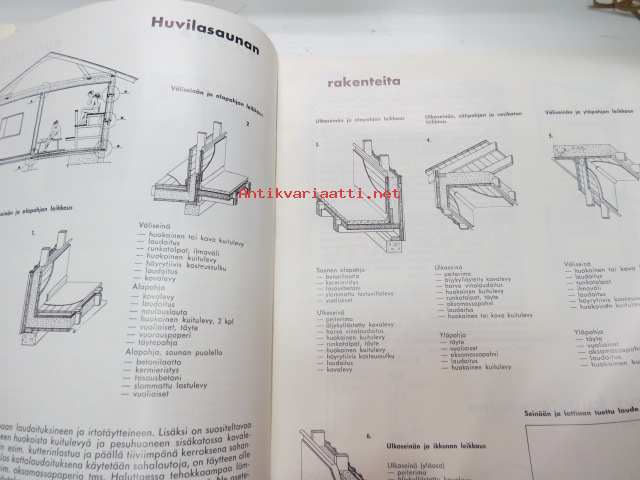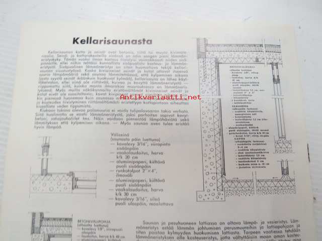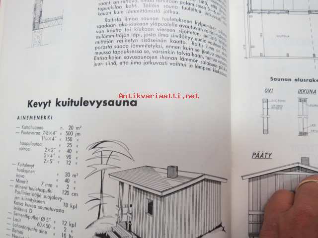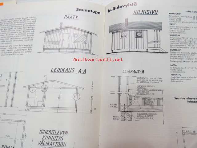 Sauna, saunarakenteita - Kuitulevyneuvonta -rakennusohjeita rakennepiirustuksineen