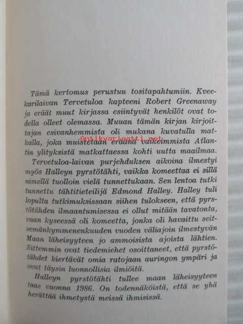 | Saatavilla | 1 kpl | | Julkaisuvuosi | 1980 | | Sivuja | 174 | | Kunto | K2 | | Sidonta/painoasu | Kuvitettu kovakantinen | | ISBN | 951-605-635-0 | | Kielet | Suomi |