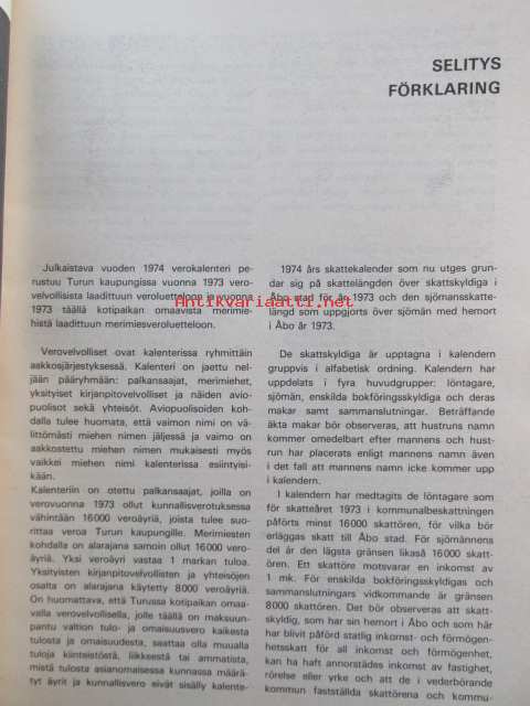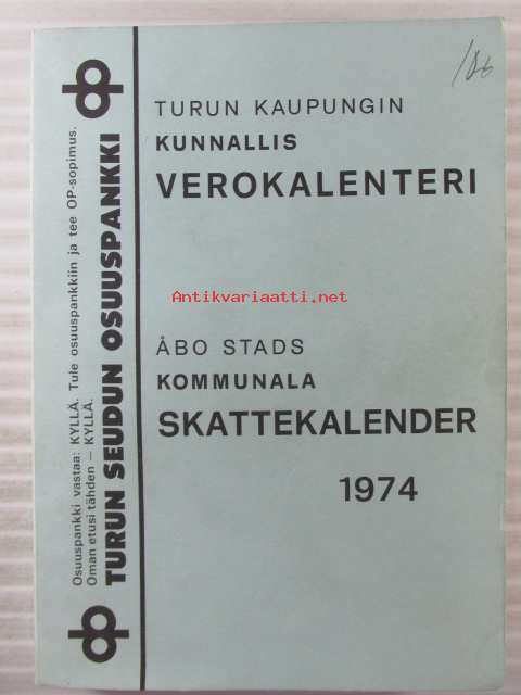 Turun kaupungin kunnallisverokalenteri 1974 vuoden 1973 tuloista