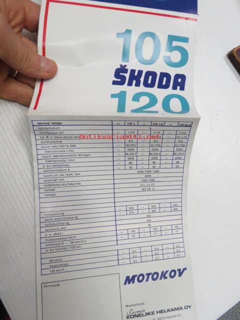 Skoda 105 S, 105 L, 120 L, 120 SL -myyntiesite / sales brochure