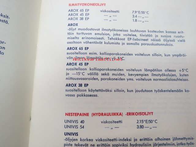 Esso teollisuusvoiteluaineet - öljyt & rasvat, perusteellinen selvitys ominaisuuksista ja käyttötarkoituksista - käsikirja