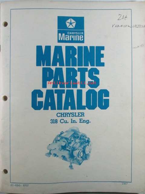 Chrysler Marine Parts Catalog, Chrysler 318 Cu. In. Eng - Varaosaluettelo, katso kuvista sisältö tarkemmin.