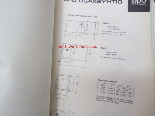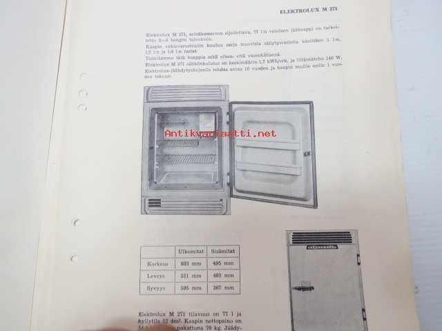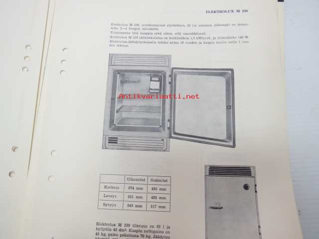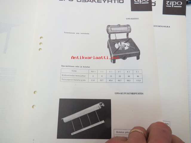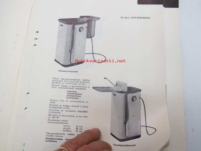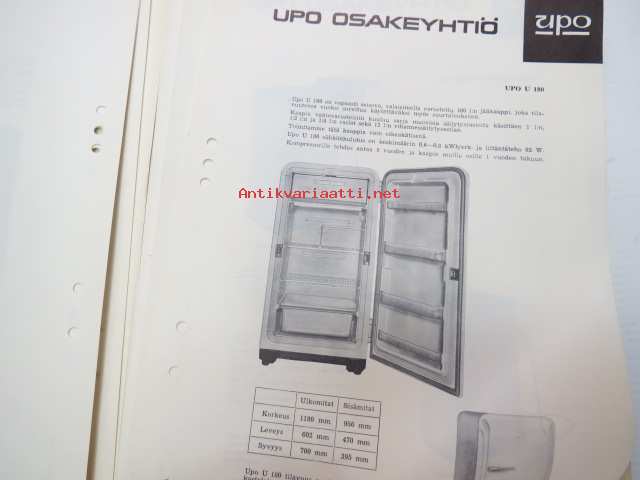 Upo- jääkaappien, pesukoneiden, talousvalujen ym. kuvitettu tuoteluettelo