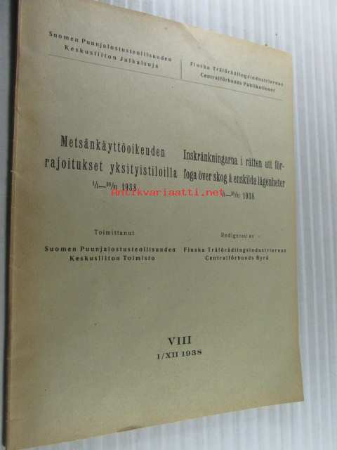 Metsänkäyttöoikeuden rajoitukset yksityistiloilla 1. 1. - 30.6. 1938 Inskränkningarna i rätten atta förfoga över skog å enskilda lägenheter 1.1.1938 -
