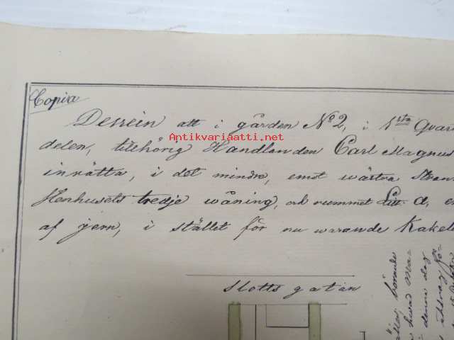 "Dessain" (=design?) att i gården No 2 i 1sta Quarteret af 6te Stadsdelen tillhörig Handlanden Carl Magnus Dahlström, inrätta, i det mindre, emot Wästra