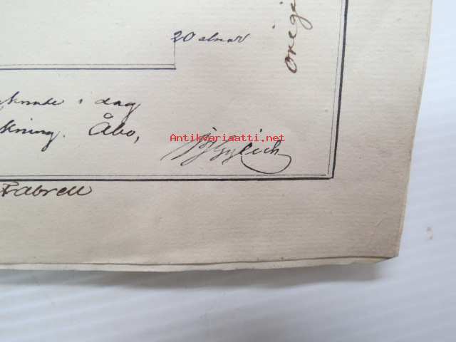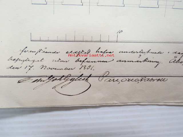 "Dessain" (=design?) att i gården No 2 i 1sta Quarteret af 6te Stadsdelen tillhörig Handlanden Carl Magnus Dahlström, inrätta, i det mindre, emot Wästra Strandgatan belägna stenhusets tredje wåning, ord rummet till "a.", en Patent-Spisaf jern, i stället för nu warande Kakelugn. -Kauppias Dahlströmin rakennuslupahakemus kaakeliuunin muuttamiseksi valurautaiseksi patentti-hellaksi, piirustuksen on 17.11.1851 tarkastanut ja hyväksynyt omakätisellä allekirjoituksellaan kaupunginarkkitehti Gylich sekä varmentaa Carl Otto Fabrell? Sikäli merkillistä, että myös piirustuksen on signeerannut Gylich, mutta ei kai tässä mitään sen kummempaa ole, niinhän se on ollut tapana, että virkamiehet valvovat itse itseään ja kunnioittivat tuolloinkin Isojen Poikien yritteliäisyyttä? Myös Lars Kekoni ja J.W. Råbergh ovat allekirjoittaneet tätä asiakirjaa.