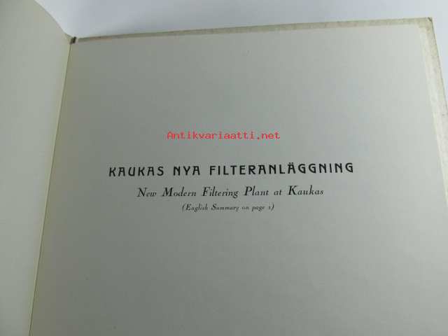 Aktiebolaget Kaukas fabrik - nya filteranläggning / New Modern Filtering Plant at Kaukas -tehdasuudistuksen esittelyn eripainos ruotsiksi, huomaa erikoiset sellukannet!