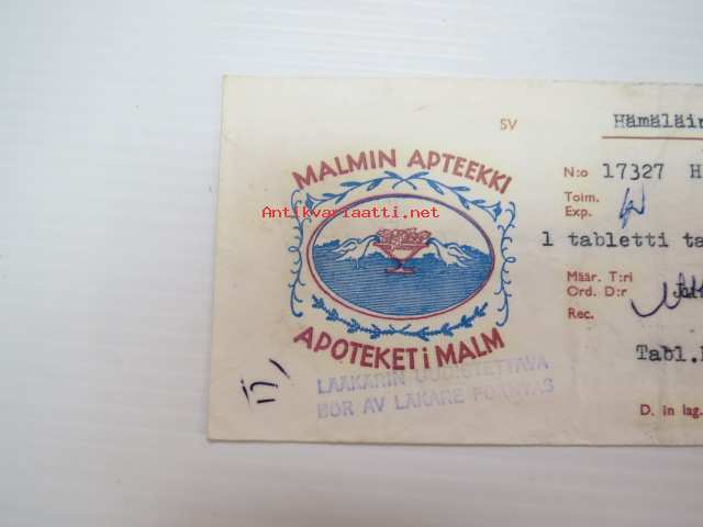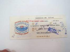 Malmin Apteekki - Apoteket i Malm, Helsinki, 24.4.1968 -apteekkisignatuuri, reseptiliuska