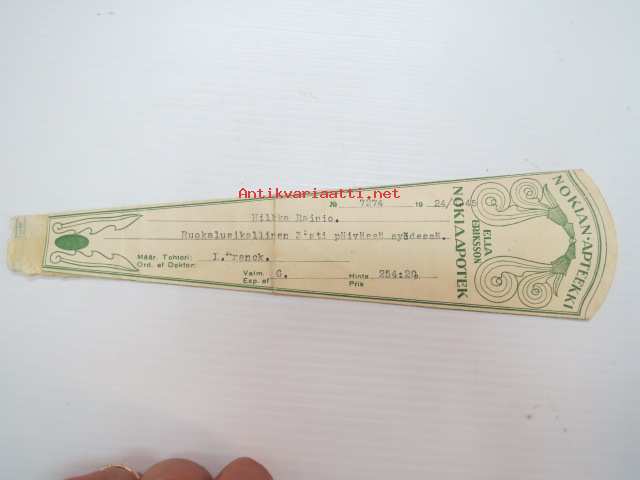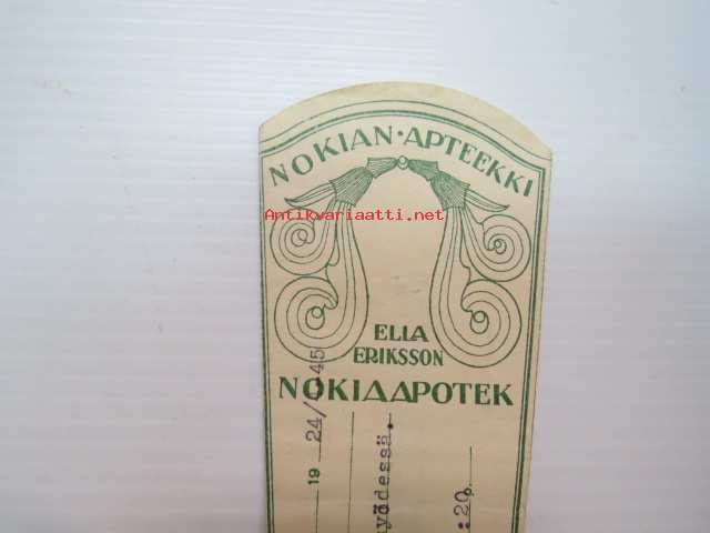 Nokian Apteekki - Nokia Apotek, 24.4.1945 -apteekkisignatuuri, reseptiliuska