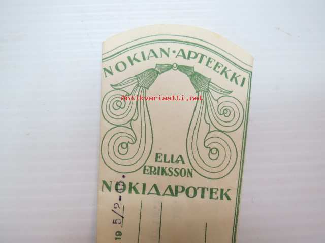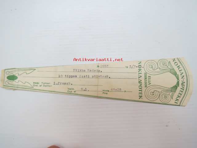 Nokian Apteekki - Nokia Apotek, 5.2.1945 -apteekkisignatuuri, reseptiliuska