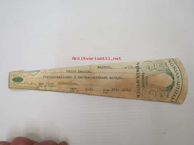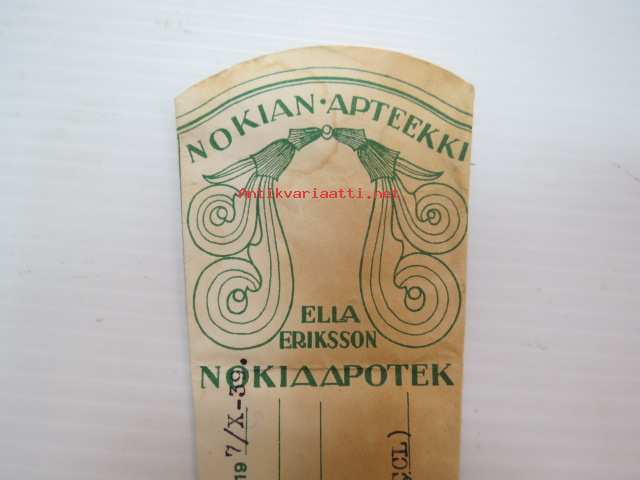 Nokian Apteekki - Nokia Apotek, 7.10.1939 -apteekkisignatuuri, reseptiliuska