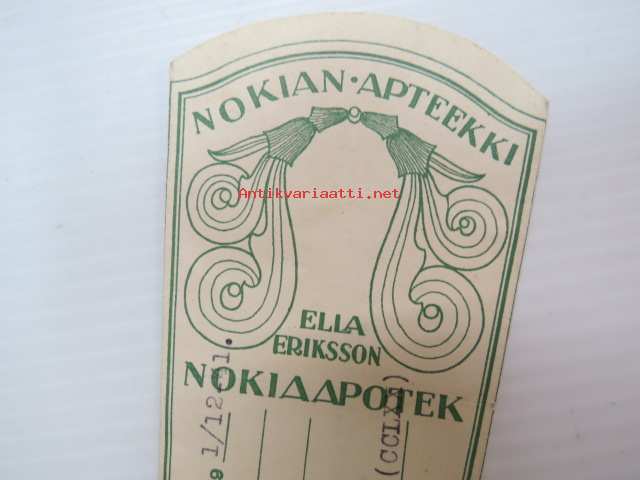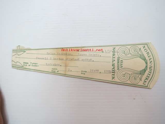 Nokian Apteekki - Nokia Apotek, 1.12.1941 -apteekkisignatuuri, reseptiliuska