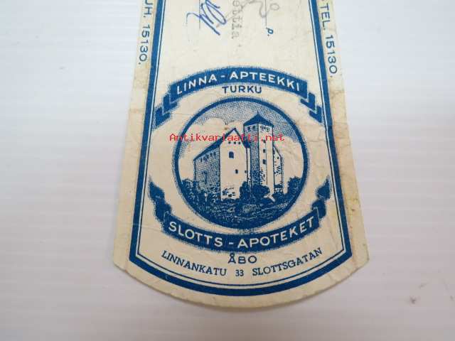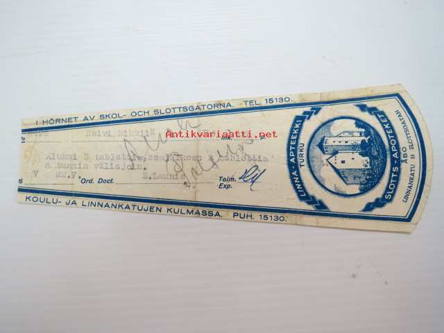 Linna Apteekki - Slotts-Apoteket, Turku, 22.7.1957 -apteekkisignatuuri, reseptiliuska
