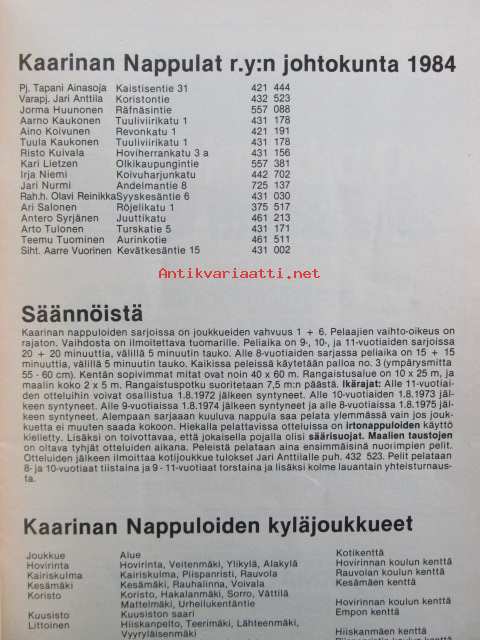 Kaarinan nappulat kausiopas 1984