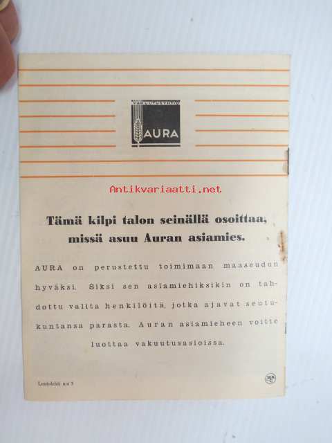 Minun taloni säilyy suvulla - Henkivakuutusosakeyhtiö Aura esite