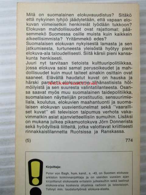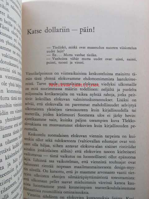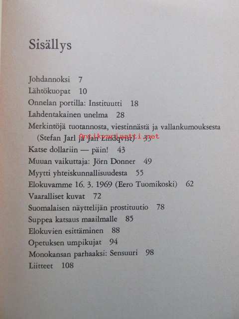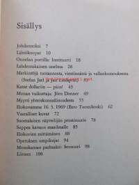 | Saatavilla | 1 kpl | | Julkaisuvuosi | 1969 | | Sivuja | 116 | | Painos | 1. | | Kunto | K2 | | Sidonta/painoasu | Nidottu (pehmeäk.) | | Kielet | Suomi |