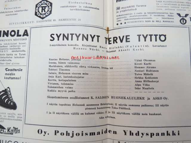 Turun Teatteri 1940-41 Syntynyt terve tyttö 3-näytöksinen komedia -käsiohjelma