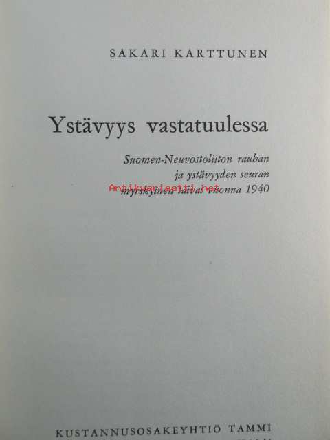 Ystävyys vastatuulessa - Suomen-Neuvostoliiton rauhan ja ystävyyden seuran myrskyinen taival vuonna 1940