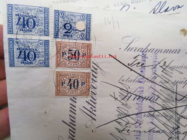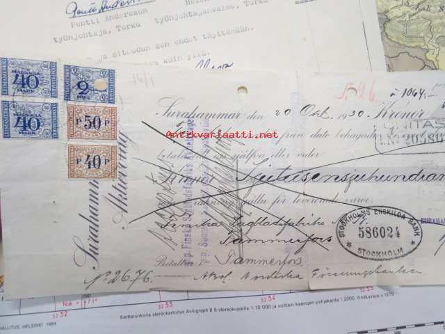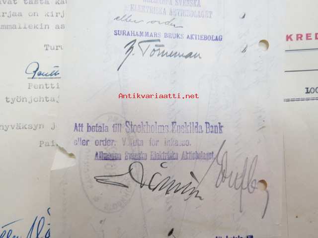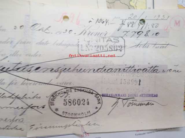 Surahammars Bruks / Finska Sågbladsfabris Ab, Tampere, 20.1.1931 -vekselilomake leimamerkein