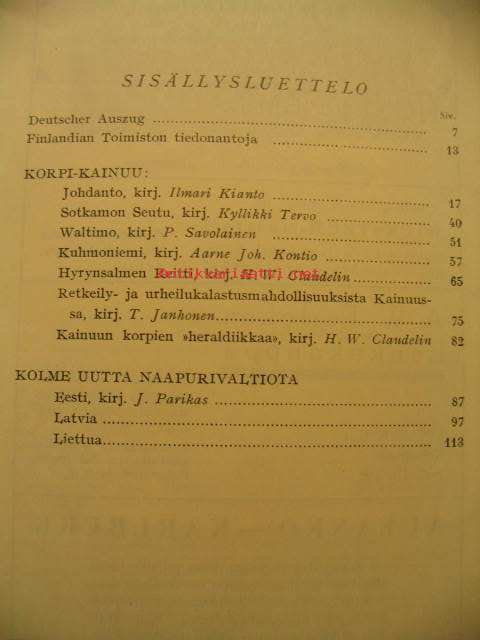 | Saatavilla | 1 kpl | | Julkaisuvuosi | 1934 | | Painos | 1 | | Kunto | K3 | | Sidonta/painoasu | Nidottu (pehmeäk.) | | Kielet | Suomi |