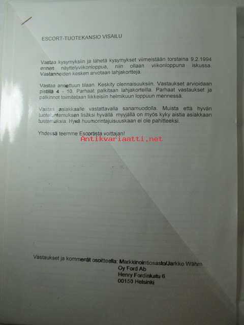 Ford Escort Väri- ja verhoilumallit 1995 1/2