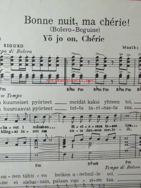 Yö jo on, Cherie - Bonne nuit, Ma Cherie - Bolero nuotit