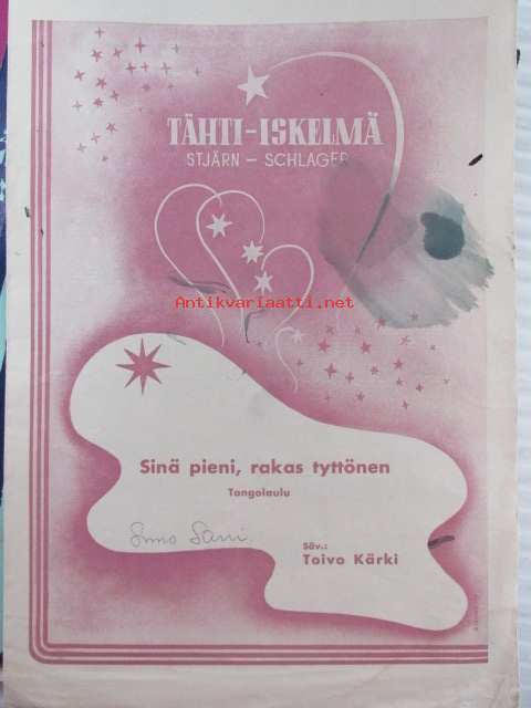 Siinä pieni, rakas tyttönen - nuotit, Tangolaulu Toivo Kärki