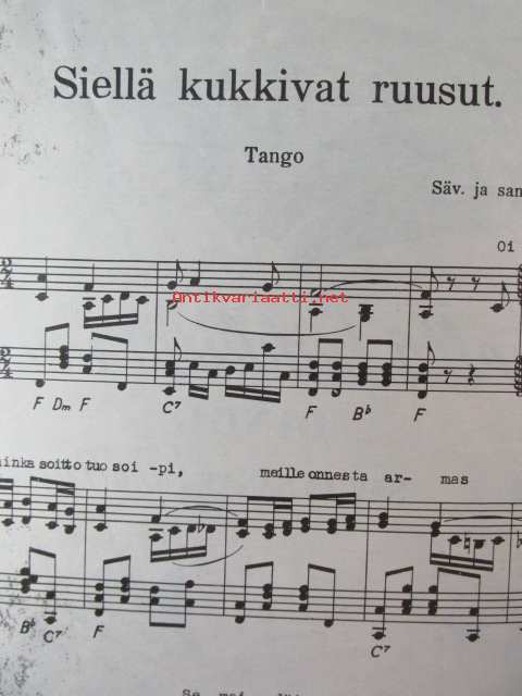 Siellä kukkivat ruusut - nuotit, Tango