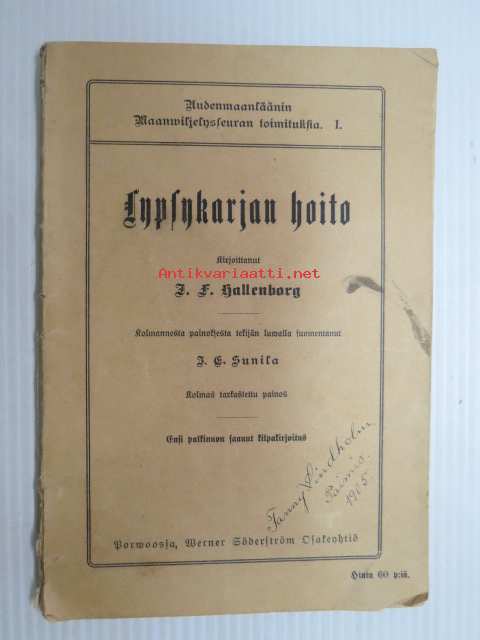 J.F. Hallenborg, WSOY, 190413 x 18 cm. Suomentanut J.E. Sunila. Uudenmaanläänin Maanviljelysseuran toimituksia I.